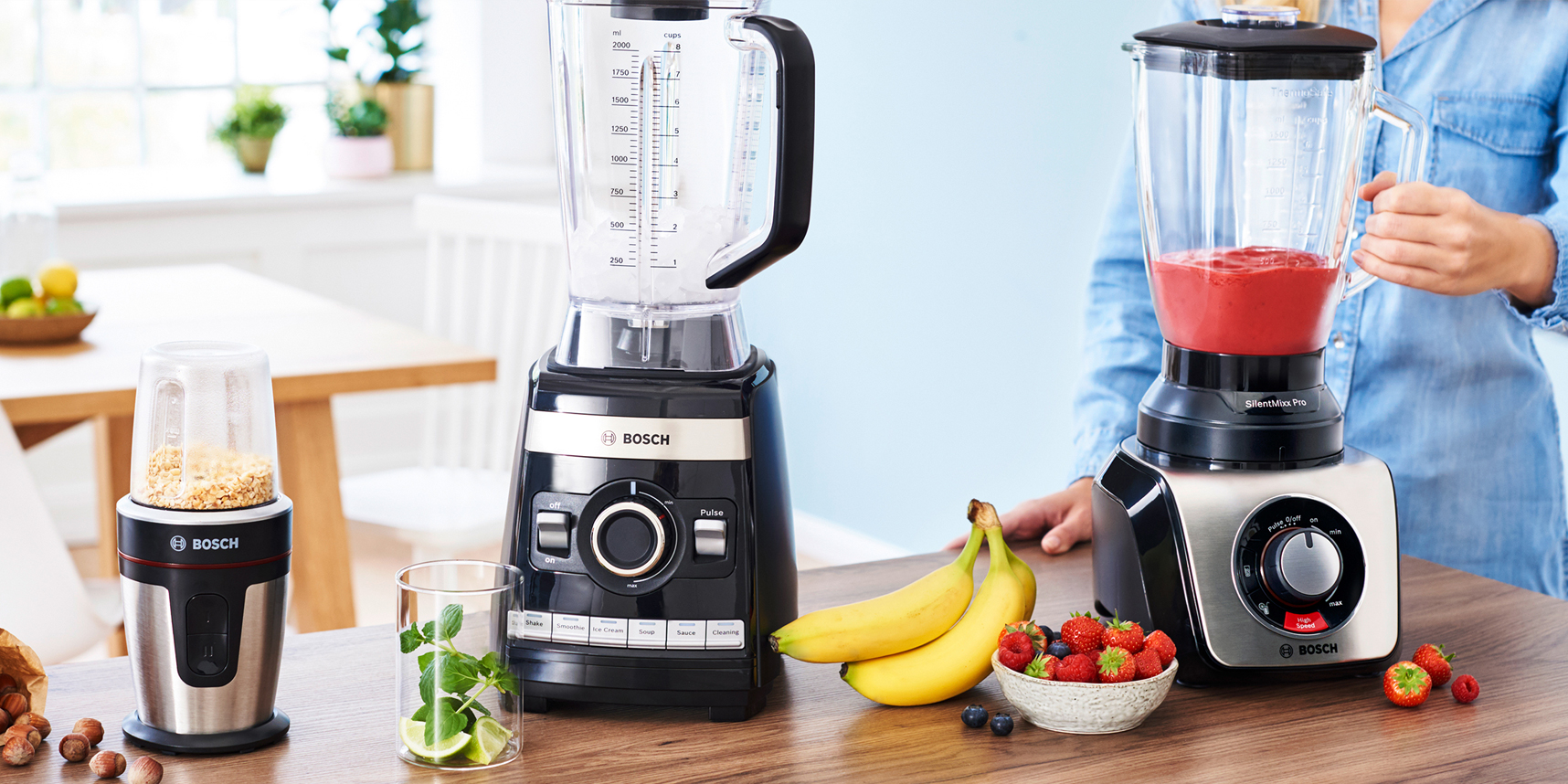 Frische Smoothies jederzeit auf Knopfdruck. Ob Obst oder Gemüse, mit Eis oder ohne, für unterwegs oder daheim – Bosch hat für jede Mix-Aufgabe den passenden Standmixer.