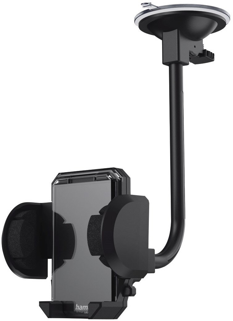 • An der Frontscheibe wird der Halter mit dem langen, flexiblen Schwenkarm mittels Saugnapf befestigt, somit beste Erreichbarkeit und Positionierung nach Wunsch möglich
