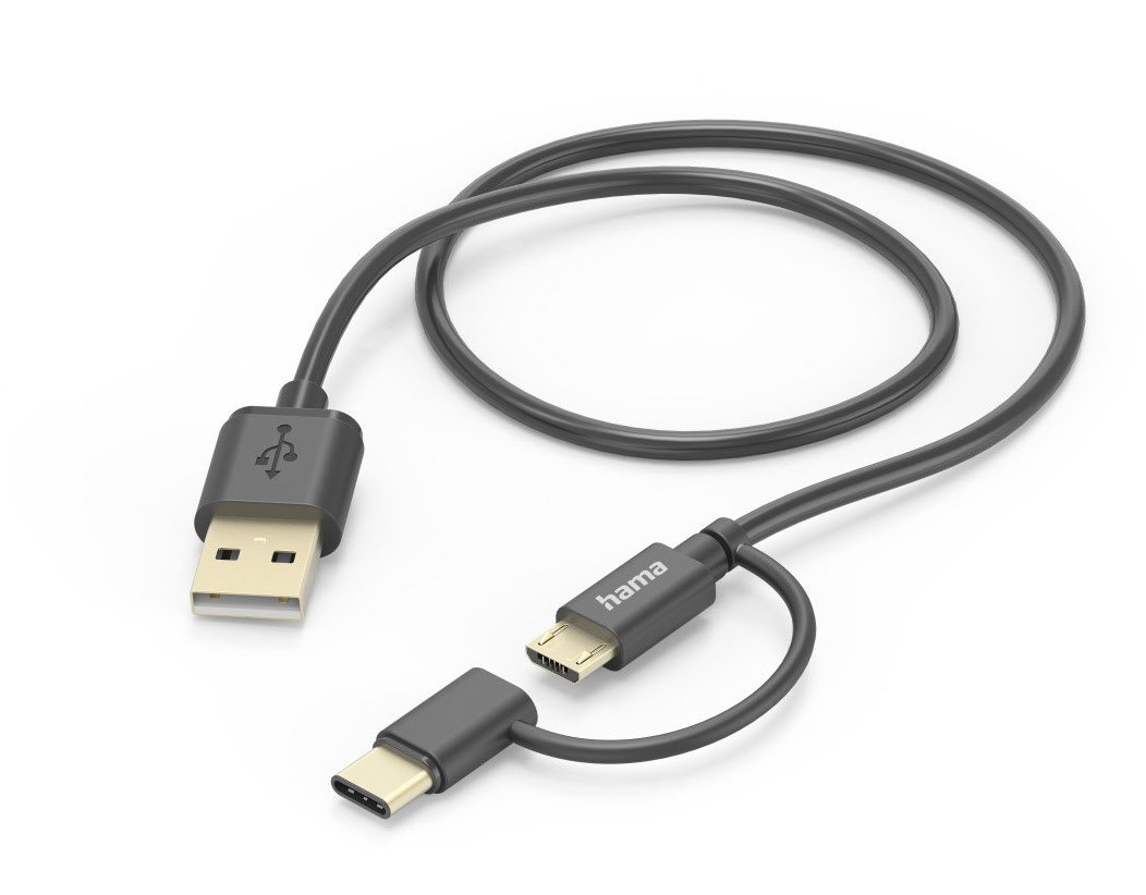 2in1 Multi-Ladekabel, USB-A - Micro-USB und USB-C, 1 m, Schw