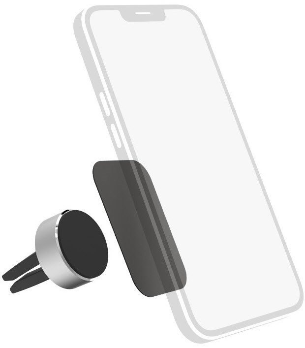 • Kompakte Magnet-Halterung zur sicheren Befestigung eines Smartphones am Lüftungsgitter eines Fahrzeugs