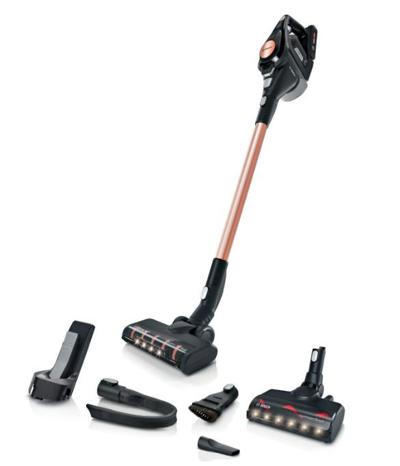 Extrem stark: keine Kompromisse bei der Leistung und so stark wie ein kabelgebundener Staubsauger. Hartboden-Softdüse mit LED-Beleuchtung: für die sanfte Reinigung sensibler Hartböden wie z.B. Parkett. AllFloor HighPower Düse mit LED-Beleuchtung: verbesserte Reinigungsleistung dank eingebauter Bodenbeleuchtung. TurboSpin Motor: schneller, leichter und noch effizienter für eine beeindruckende Reinigungsleistung. 4.0 Ah Power Plus Akku: austauschbarer 18 V Akku von Bosch für unbegrenzte Laufzeit1. Zubehör: 1 x Fugendüse, 1 x Ladegerät, 1 x Austauschbarer Akkupack, 1 x Ladestation, 1 x 2in1 Möbelpinsel & Polsterdüse, 1 x Lange flexible Fugendüse, 1 x HardFloor SoftBrush mit LED Licht.