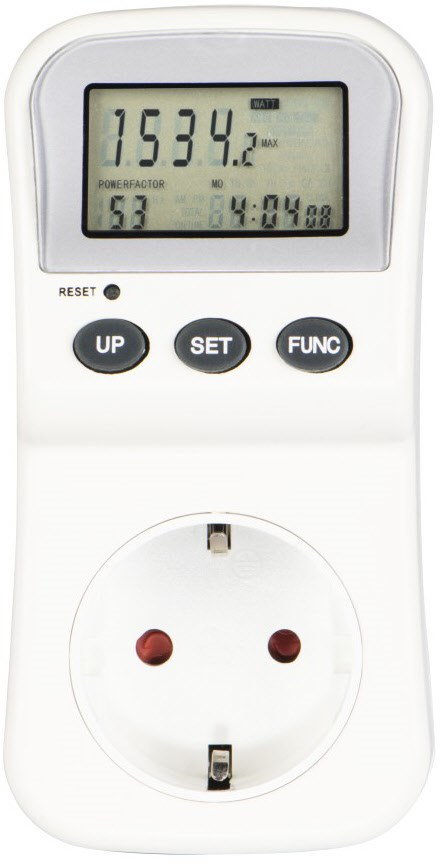 • Hochwertiges Messgerät zur Messung und Anzeige von Zeit, Spannung, Frequenz, Stromstärke, Leistungsfaktor, (Min.- und Max.-) Leistung sowie Energiemenge