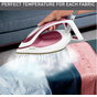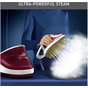 Bügelsohle: Durilium Airglide Autoclean Ultra Thin. 7,5 Bar Druckdampf, Variable Dampfmenge: 0-155 g/min. Extra-Dampfstoß: 590 g/min für dicke Stoffe. Automatische Temperatureinstellung. Integrierter herausnehmbarer Anti-Kalk-Kollektor. Schnellaufheizend, betriebsbereit in 2 Minuten. Abnehmbarer Wassertank (1,2 Liter). Einfaches vertikales Dampfen für empfindliche oder übergroße Kleidungsstücke und Heimtextilien. Fortschrittliche Anti-Tropf-Technologie. Verschlusssystem mit Schnellverriegelung für einfachen und sicheren Transport. Ein-/Ausschalter, Temperatur-/Dampfbereitschaftsleuchte, Kontrollleuchte "Entkalken" und "Wassertank leer". Automatische Abschaltung nach 8 Minuten ohne Gebrauch. 3.000 Watt.