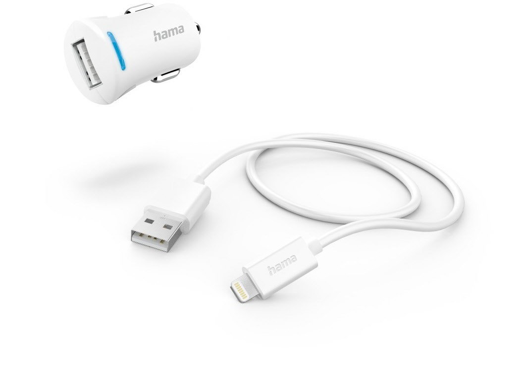 Auto-Ladegerät mit Ladekabel Lightning, 12 W, 1,0 m, Weiß