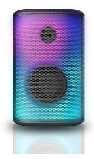 FEATURES • stylischer Wireless Audio Lautsprecher • integrierter Akku • integrierter 64GB Speicher für Musik • RGB Stimmungslicht • 3 Equalizer-Voreinstellungen: Indoor, Outdoor, Bass Boost • USB-Ladeausgang für das Laden von Mobiltelefonen • IPX5 wasserdicht TECHNISCHE DATEN • 4.000 mAh Li-Ion Akku