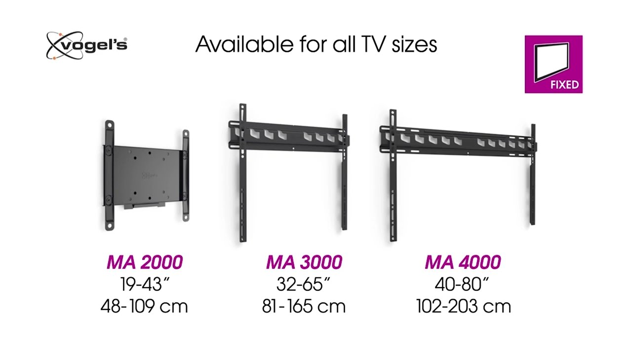 Die felsenfeste MA 4000 hält Fernseher mit einem Gewicht von bis zu 80 kg mühelos in Position. Diese TV-Wandhalterung ist für große Fernseher zwischen 40 und 80 Zoll geeignet.