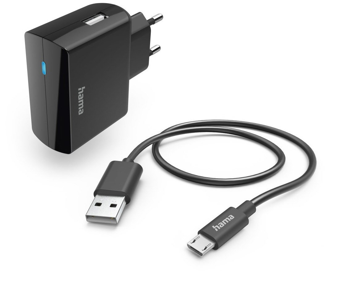 Ladegerät mit Ladekabel Micro-USB, 12 W, 1,0 m, Schwarz