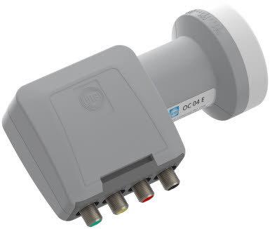 Das OC 04 E ist ein Universal Speisesystem welches über 4 Anschlüsse die Signale der einzelnen Polarisationsebenen bereitstellt. Der Einsatzbereich ist somit für Multischalter-, Unicable- und Kanalaufbereitungsanlagen. Der Empfangsbereich dieses Speisesystems erstreckt sich über alle gängigen Satellitensignale (DVB-S/S2/S2X) im KU-Band, wie z.B. Astra 19,2 Ost oder Hotbird auf 13° Ost. Ein geringes Eigenrauschen sowie eine optimale Linearität bei hohem Ausgangspegel gewährleisten eine stabile Signalversorgung der Empfänger. Das ÜV-beständige Gehäuse schützt die Elektronik vor Witterungseinflüssen und die ausziehbare Schutzabdeckung verhindert das Eindringen von Wasser über die F-Stecker. Ein hochgeschirmtes Gehäuse schützt das LNB und somit die Verteilstruktur vor 4G/LTE-Einstrahlung.