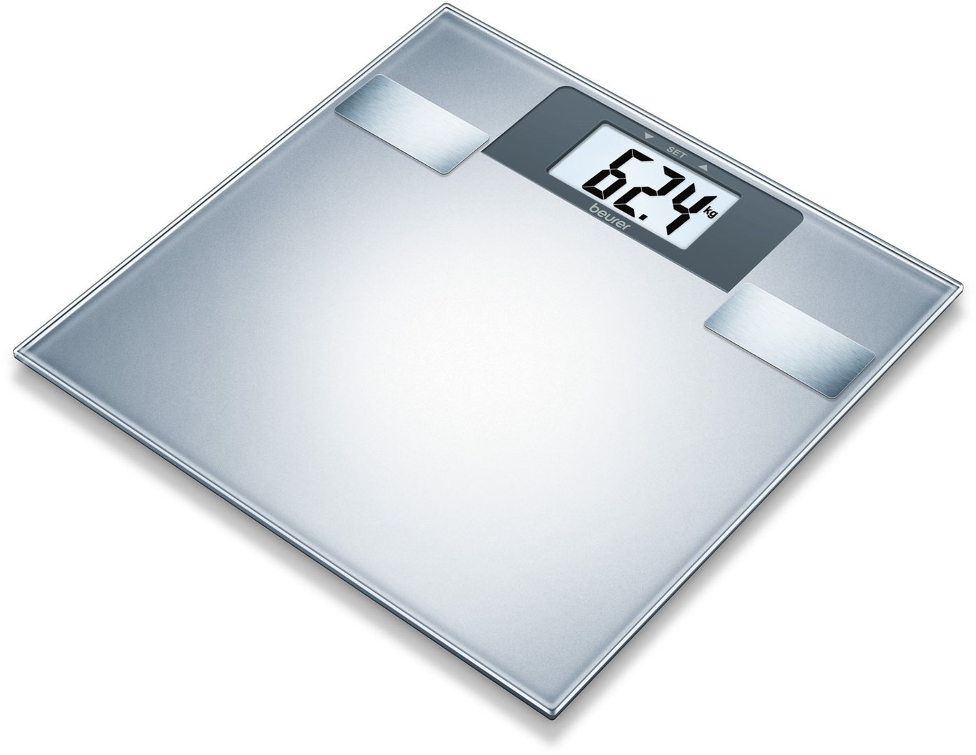• Mit Elektroden aus gebürstetem Edelstahl, Trittfläche aus Sicherheitsglas