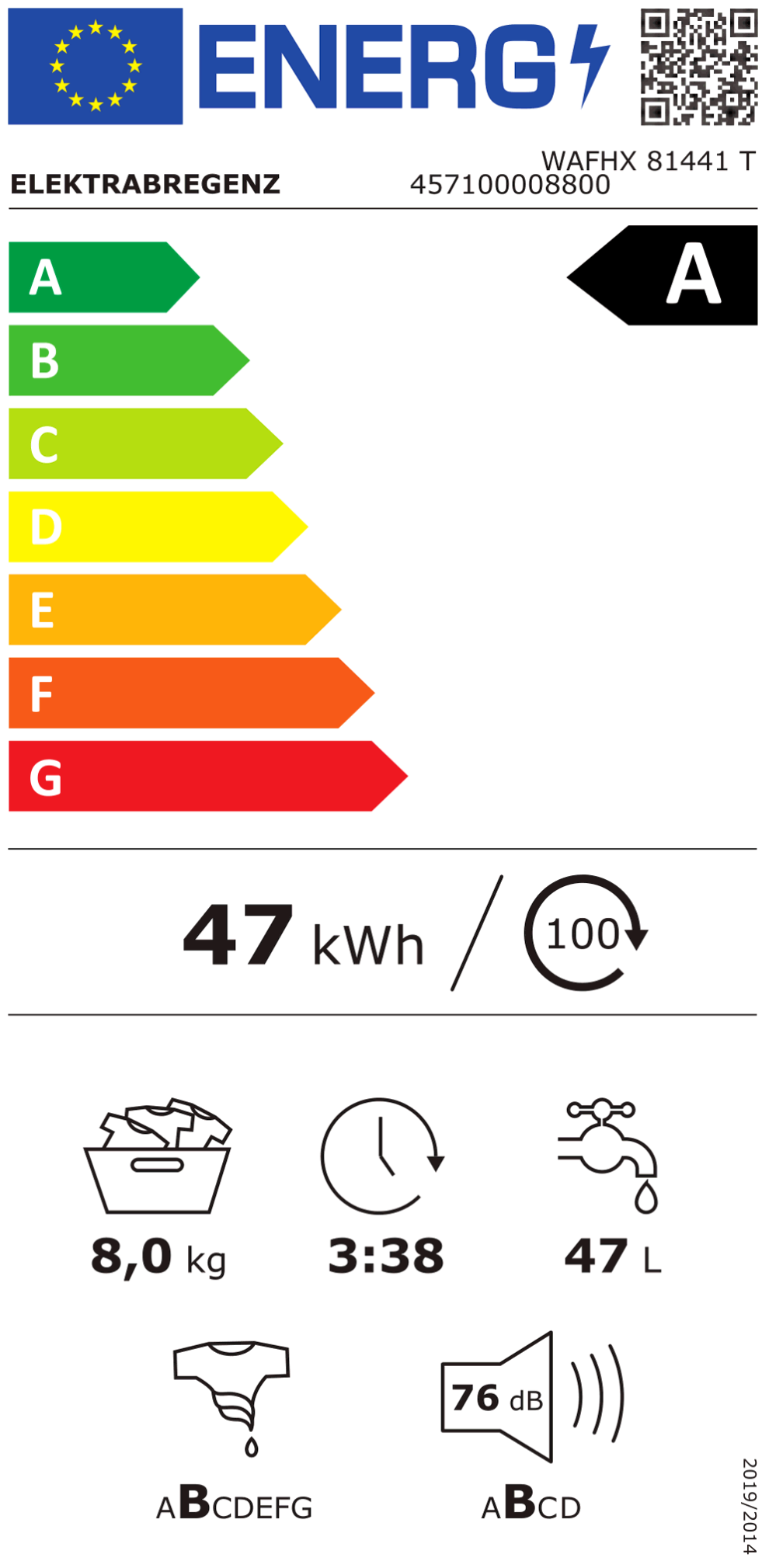 Betriebsgeräusch, Schleudern (dBA) 76