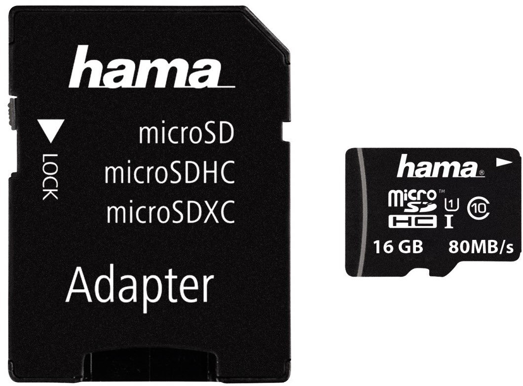 microSDHC 16GB Class 10 UHS-I 80MB/s + Adapter/Foto